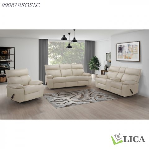 Welcome to comfort that moves with you with the Kandra 3-piece Reclining Upholstery Set. Whether you’re kicking back after a long day or settling in for movie night, this collection is designed to bring personalized relaxation into every corner of your living room. Beautifully appointed with piped seam edges for a tailored look, decadent beige top grain leather greets you on all front surfaces that touch your skin with premium faux leather PVC-match on the sides and back. You are in for a treat as you sink into the generously padded cushions, especially with the plump headrests and pillowtop arms that were made for real lounging. Not to mention the smooth reclining experience – simply pull the lever and away you go! Double-ended reclining allows both ends of the sofa and loveseat to recline independently so you don’t bother your seatmate. Finally, the loveseat’s central storage console with built-in cupholders and the recliner’s gentle gliding function are icing on the cake to make this collection as functional as it is suave. With durable construction and timeless style, the Kandra doesn’t just add seating to your space – it makes it feel like home.