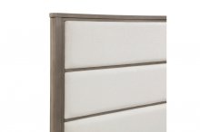 Introduce serene style and sophisticated comfort to your bedroom with this cohesive collection, finished in a contemporary light gray oak veneer. The centerpiece is an elegant panel bed (available in queen, eastern king, or california king) featuring a frame beautifully contrasted by plush, beige chenille fabric upholstery on the headboard and footboard. Complementing the bed are fully assembled case goods—including the nightstand, dresser, and 5-drawer chest—all offering exceptional storage with smooth ball-bearing glides and sleek polished chrome-tone edge pulls. The collection is completed by a matching dresser mirror, creating a refined, tranquil, and organized sanctuary.