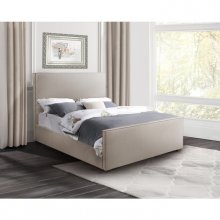 Create a cozy yet contemporary focal point with the Tamaka Collection's understated style. This Queen Bed is fully upholstered in soft textured beige boucle fabric with a padded frame that evokes a welcoming and inviting atmosphere. Crowned with both a tall headboard and a low-profile footboard for a stately, unfettered look, this bed also features welted seams that refine the silhouette with a tailored finish. Crafted with durable framing that includes platform slats, this convenient design requires no box-spring or foundation for easy setup with just your mattress. With its neutral design, the Tamaka blends beautifully with a wide range of case pieces and décor styles, so don't hold back - let your tastes go wild!