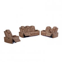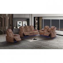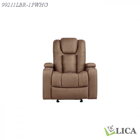 The Tabor II Collection takes comfort to the next level by blending supportive seating with tech convenience into one sleek package. Wrapped in soft light brown polished microfiber with diamond-quilted accent stitching, this recliner is crafted for full body relaxation. Power reclining with power adjustable headrests creates the ideal lounging experience where you can customize your optimal position, while cupholders in the armrests – plus concealed armrest storage – keep both drinks and devices close at hand. Built-in USB ports and LED lighting make this seat perfect for movie marathons or game day hosting, not to mention the glider mechanism for gentle back-and-forth motion. Whether you’re flying solo or entertaining a full house, the Tabor II means every seat is best one in the room.