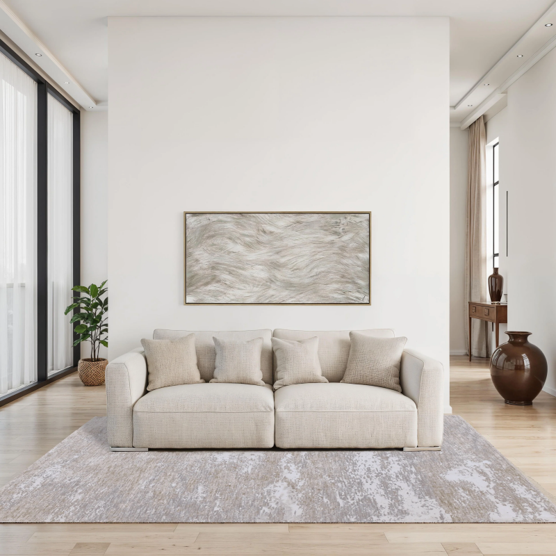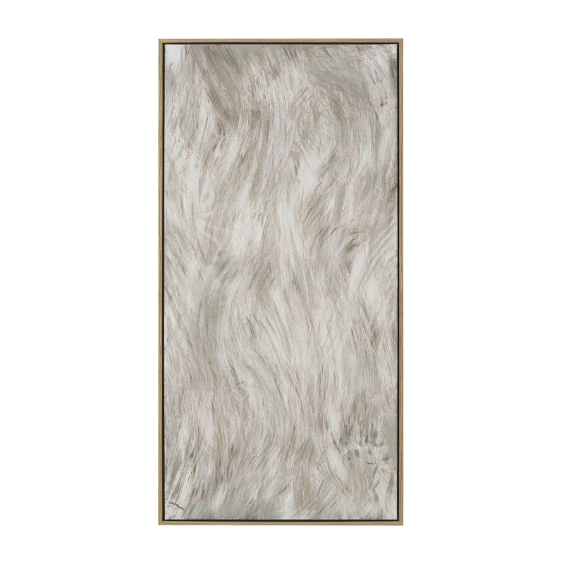 From guest designer, Steven Sabados, comes this hand-painted walnut-framed canvas, perfect for transitional or modern spaces. Composed with neutral shades of beige and brown, it brings warmth and texture to any room. Featuring oversized dimensions and 2-way hanging, display this wall art canvas vertically or horizontally to bring your vision to life. Product Details: