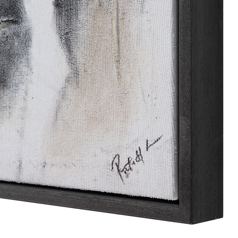 Proving that simplicity has a place in the art world, this abstract canvas wall art is ready to impress. Combining geometric forms with neutral shades of beige, this high-quality hand-painted canvas delivers depth and texture to any modern space. 2-way hanging and a handsome dark grey frame let you display it however best suits the space and mood. Product Details: