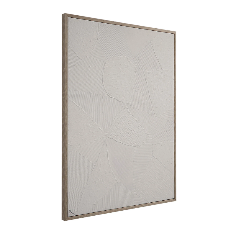 Subtle details and a minimal palette lend an air of sophistication to the home interior. When set against a vibrant or wall-papered wall, this art painting and its white frame require no extra embellishment to pop. Alternatively, when this canvas painting hangs against a white backdrop, it blends and allows the textured strokes to take focus. Product Details:
