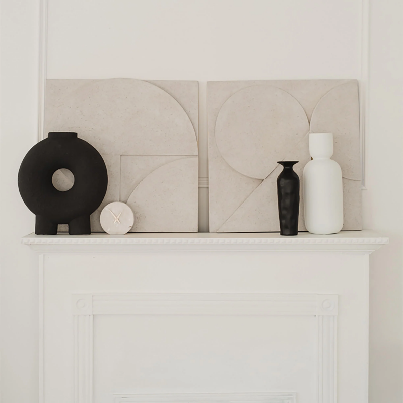 This volcanic ash stone wall decor has the ability to ground an interior, all while elevating its sense of subtle sophistication. The client with a minimal living room interior will find this piece feels like a natural extension of the room's character. This unique wall art can be displayed in four different ways; the geometric shapes take on new highlights and shadows in each arrangement. Product Details: