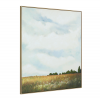 Elevate any interior with the touch of nature embodied by this beautiful landscape painting. Artfully embellished with hand-painted accents, its richly hued shades of green and soft blue join in a harmonious meeting of land and sky to create an eye-catching focal point in any room. Wrapped in a new bleached wood-finished frame, this wall art is ready to impress. Product Details: