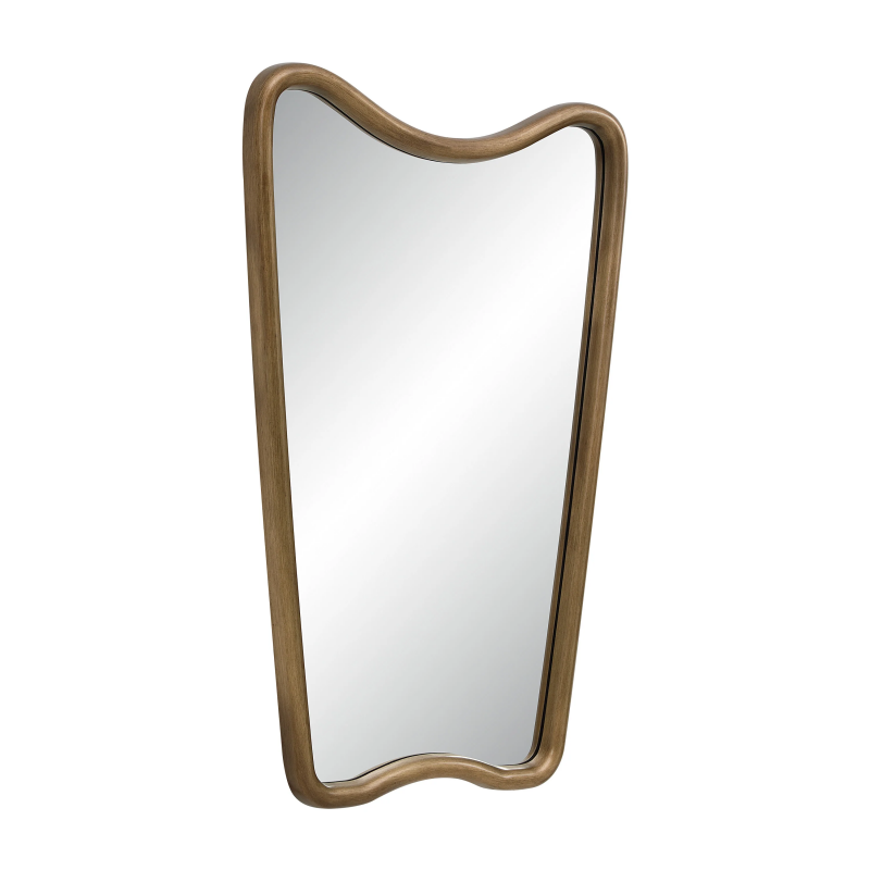 Give any room a fresh sense of character with the Echoa wall mirror, designed to balance elegance and timelessness. Its gently rounded form introduces subtle softness, while the warm gold-toned frame delivers a refined, upscale touch. Completed with clear, silvered glass for a distortion-free reflection, this mirror enhances both everyday style and the overall ambiance of your design project. Product Details: