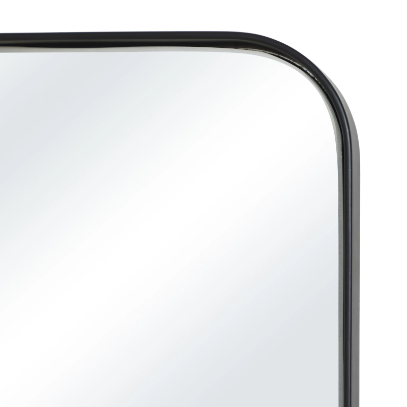 With its clean profile and subtly curved edges, the Glencoe mirror brings sleek, modern refinement to any room. Its sturdy iron frame, finished in matte black, offers a striking, contemporary presence without taking over the space. Crafted with high-quality glass for a crystal-clear reflection, this mirror enhances light and adds a polished, understated touch to today’s minimalist interiors. Product Details: