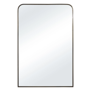 Possessing a modern and timeless quality at once, this mirror complements decor elements in its vicinity while making a stylish statement of its own. At 24 by 36 inches, it holds idyllic dimensions to rest atop a vanity or dresser. With a gold powder-coated iron frame, it is an optimal fit within a mid-century modern interior, with the ability to go classic when styled for such. Product Details: