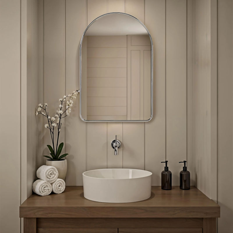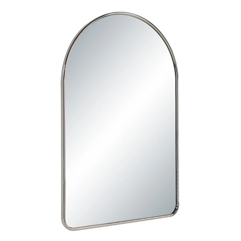 What began as a trend has become a classic staple in the world of interior design. The arch mirror is here to stay, and this one is especially stylish with its slim, polished nickel frame and slightly rounded corners. For a modern impact in any room, feature this wall art mirror alone or as a pair. Product Details: