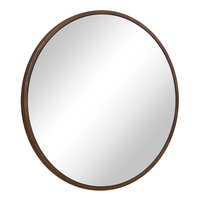 If there was ever any doubt that the mid-century modern aesthetic is here to stay, this wall art mirror will make it very clear. Its painted walnut finish, versatile dimensions and simple design make it perfect for any number of settings. To elevate any home or office space, incorporate this great-looking round mirror in your decorating plan. Product Details: