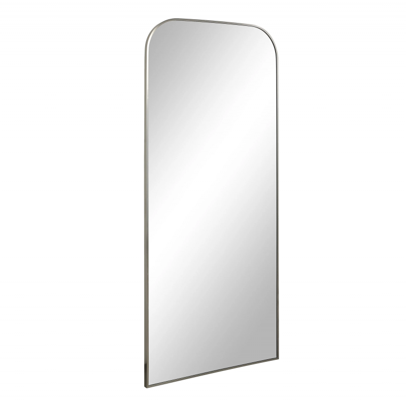 Elevate any contemporary space with the clean lines of this modern full-length mirror. Perfect for providing fashionable function in a bedroom, entryway, living room, or office, its crystal-clear mirror glass delivers a distortion-free reflection while its brushed nickel-plated frame lends a high-end look that suits today’s stylish spaces. Product Details: