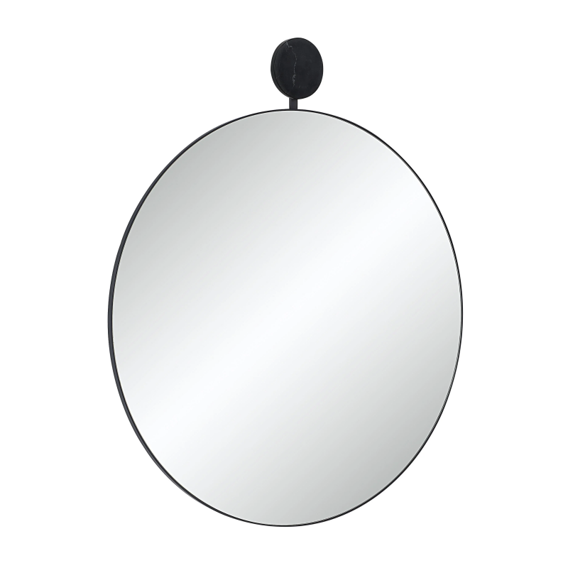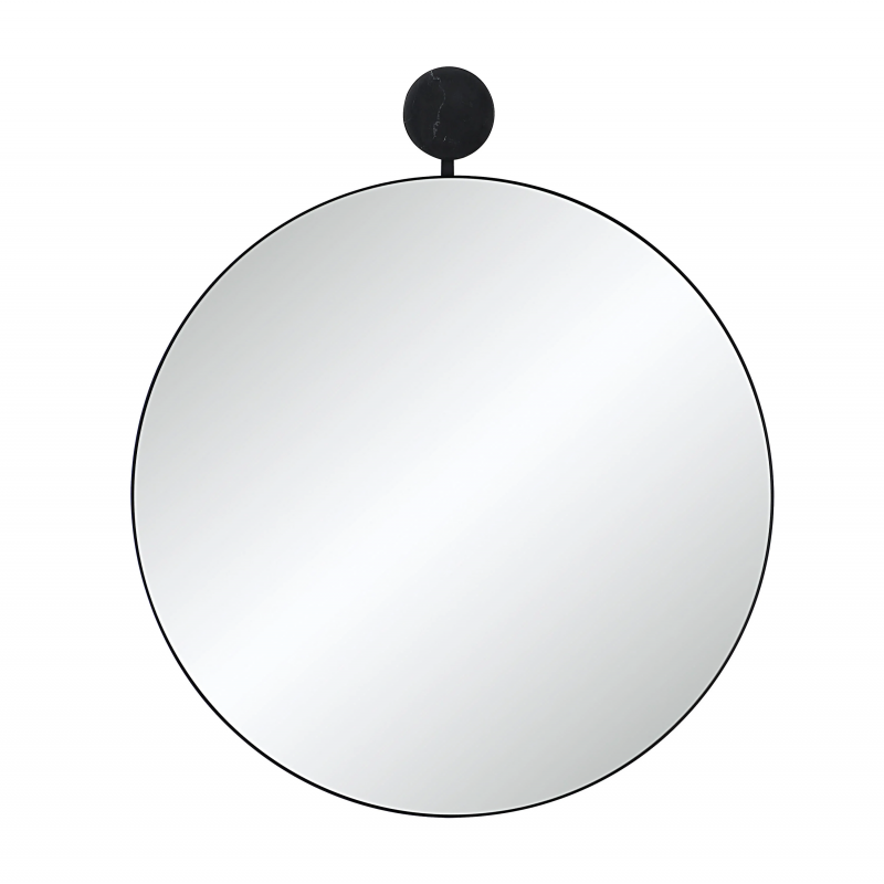 Elevate your decorating scheme with this out of the ordinary round wall art mirror. Its striking black frame features a statement-making marble accent that brings a unique twist while adding form and function to any modern home or office. Hung over a fireplace, in an entryway, dining room or bedroom, its distortion-free mirror glass provides a crystal-clear reflection without sacrificing style. Product Details: