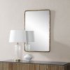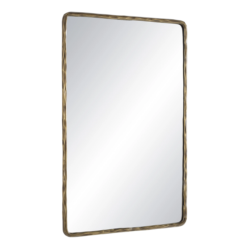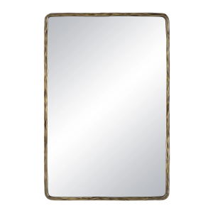 The Ivory wall art mirror is here to help fans of easy, contemporary style make a statement in any space. Graced with a dark antique brushed brass plated finish, this cast aluminum-framed mirror is ideal to hang horizontally or vertically anywhere people need to catch a glimpse of themselves. Great for bouncing light around the room, it makes any space look bigger and brighter. Slightly rounded corners soften the look of this rectangular mirror for a modern update to a classic shape. High-quality materials ensure the glass is distortion-free and the frame maintains its form for years to come. Product Details: