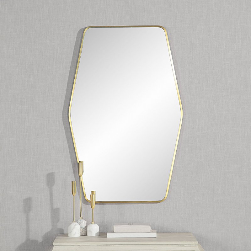 The Mocha 40 Tall Rectangular Mirror in Satin Brass is a stunning addition to any modern or contemporary space. With its sleek and sophisticated design, it seamlessly blends into any room, while standing out as a beautiful and functional piece. Constructed from durable stainless steel frame, this mirror is durable and long-lasting. What sets this product apart is its unique, slim profile that makes a bold statement to any space. The Mocha is not just a mirror, but also a work of art that adds elegance and refinement to your home. Product Details: