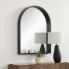Enhance the appeal of any room with the exquisite Cove 46" Tall Arch Rectangular Mirror in Matte black. Crafted with a high-quality and durable cast aluminum frame, this mirror reflects a sophisticated arch shape that adds timeless and elegant charm to any space. With a D-Ring hanging system, installation becomes conveniently hassle-free. Optimized for easy vertical hanging, it offers effortless display. Product Details:
