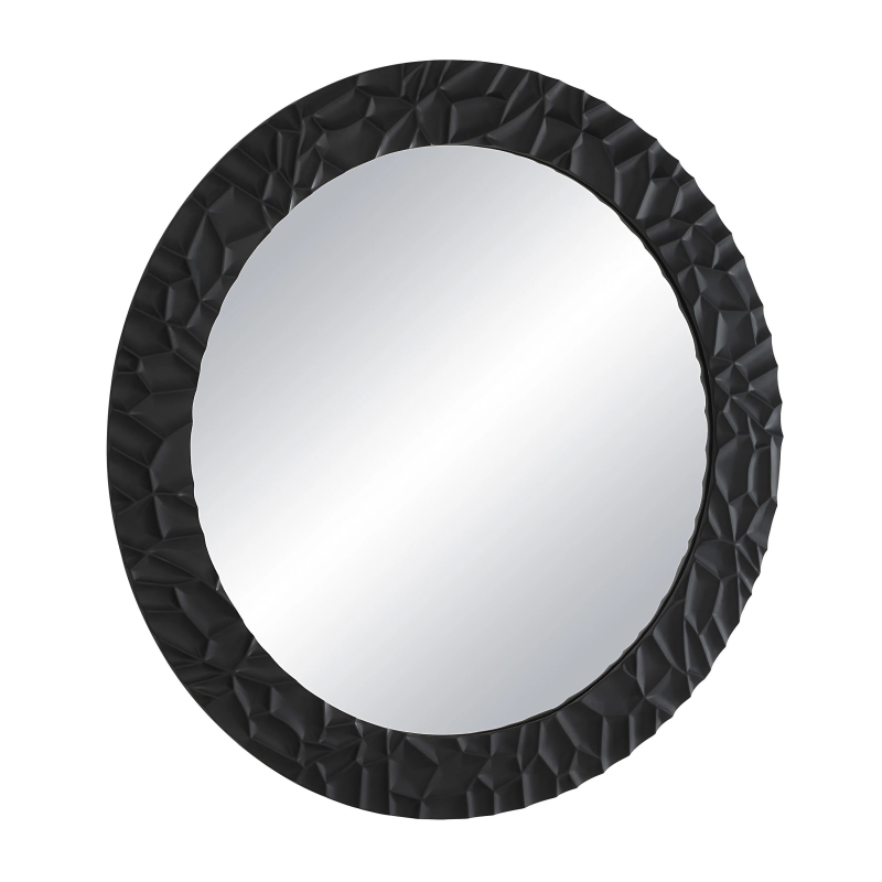 With a rugged hammered metal look, the Tolima wall art mirror is set to add drama to any setting. Created using cast aluminum with a matte black finish, this mirror has all the great looks of iron without the extra weight. Its sturdy yet lightweight construction joins forces with a D-ring system to make installation easy anywhere you see fit. Hung over a fireplace, above an entryway table, or anywhere that needs a shot of eclectic style, this mirror is sure to update any space.