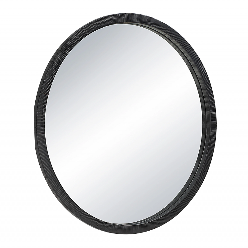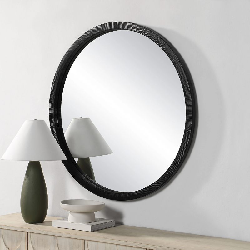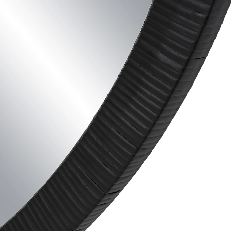 Bring a sophisticated yet laid back look to any space with the Solo round wall art mirror. Featuring a rattan wrapped frame with a black-painted finish, it’s loaded with texture and drama. Offering a generous 48” diameter, it’s perfectly sized for creating a large-scale impact in your design project. D-ring hardware makes installation a breeze so as soon as this mirror arrives to its new space, it’s up and ready for action. Hang it over a fireplace, in an entryway, in a bedroom, or anywhere your creative mind dictates. Product Details: