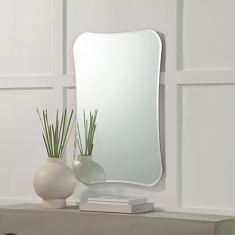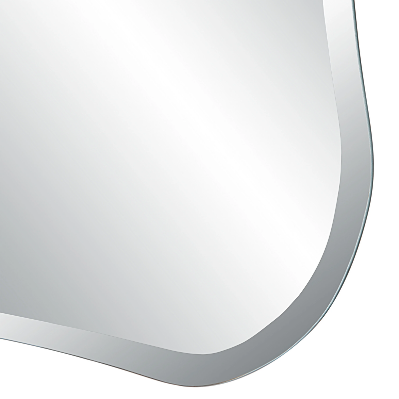 Upgrade your space with the Kalmia 36" Tall Rectangular Irregular Mirror. Its abstract shape adds a touch of modern flair to any room while its low-maintenance design makes it incredibly easy to clean. Equipped with a D-Ring hanging system, this mirror can be installed quickly and easily. With its sleek and elegant design, this mirror will instantly elevate the look of any room. The unique irregular shape adds a touch of visual interest, while the tall size allows for a full-body reflection. Additionally, the four-way hanging system allows for versatile display options, ensuring that you can get the perfect look for your space. Product Details: