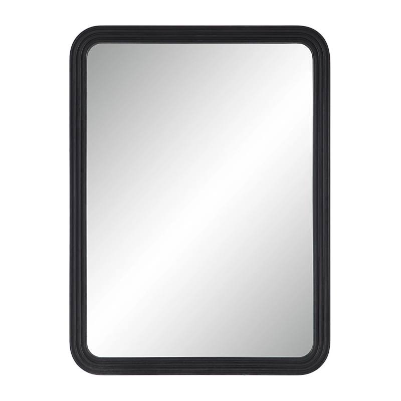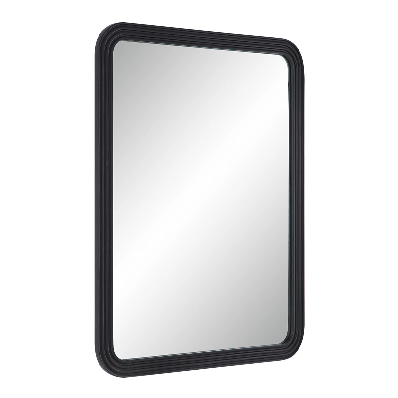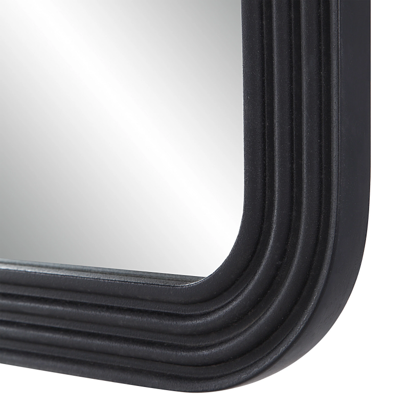 Upgrade your interior with our Nolana 40 Tall Rectangular Mirror in textured matte black. Made with a sturdy MDF frame, this mirror is built to last and exudes a sleek, versatile design. The D-ring hanging system makes it easy to install, and with four-way hanging capabilities, it offers versatile display options to suit any interior. A perfect complement to any room decor, this mirror is a statement piece that enhances the aesthetic of your space. With its standout design and impressive functionality, this mirror is a must-have for anyone looking to bring a touch of elegance to their interior design. Product Details: