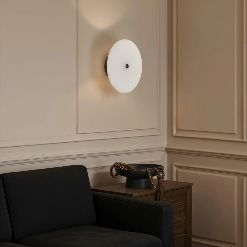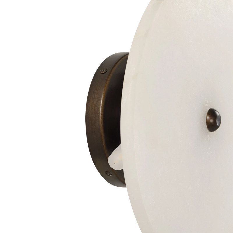 The Lorenzo wall sconce delivers modern minimalism with a warm, artful glow. Its translucent alabaster body gently diffuses light, while dark antique bronze accents add striking contrast and depth. With its clean lines and understated sophistication, it brings a serene, sculptural presence to any room. Product Details: