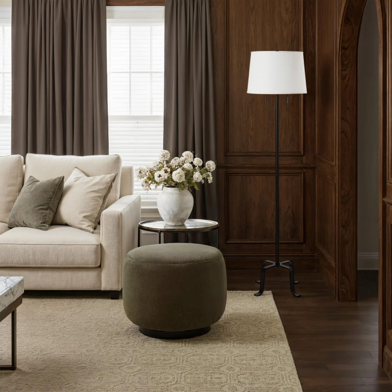 Brighten your space with the Ruslur floor lamp, where classic charm meets modern ease. Its matte-black body and off-white tapered shade create a warm, elegant glow, while double pull-chains help set the mood in an instant. From living rooms to offices, it brings a timeless, inviting touch that feels effortlessly refined. Product Details: