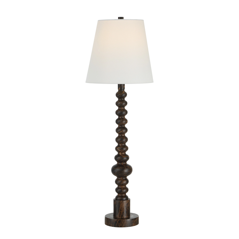 The Famar table lamp combines bold design with subtle elegance. Its black marble-effect base contrasts beautifully with a clean off-white linen shade, creating a striking focal point. A rotary dimmer lets you customize the light, while its sleek, contemporary lines bring texture and sophistication to modern or transitional interiors alike. Product Details: