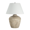 The Heritage table lamp combines classic charm with effortless warmth. Its ceramic base, finished in a softly distressed brown and beige glaze, offers a naturally classic look. Dark antique bronze accents add subtle sophistication, while the ivory linen shade casts a gentle, inviting glow that’s perfect for enhancing living rooms, bedrooms, or any space in need of timeless elegance. Product Details: