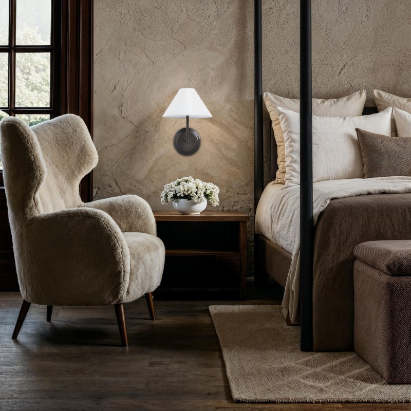 Add relaxed sophistication to any space with the Serena sconce. Its clean lines, dark antique bronze finish, and airy off-white linen shade create an effortlessly polished look. Whether flanking a mirror, accenting a bed, or brightening a cozy reading nook, it delivers layered light and subtle modern flair with ease. Product Details:
