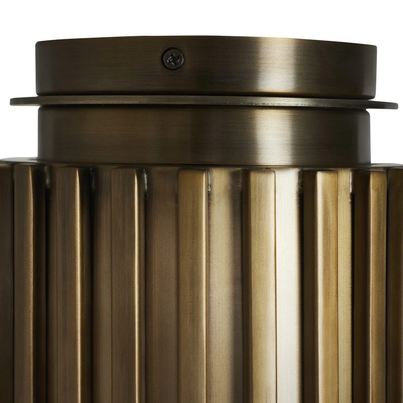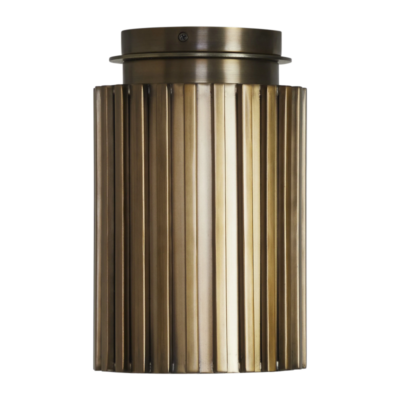 The Fenice flush mount transforms everyday lighting into a sculptural statement. Its fluted cylindrical shade and dark antique brass fittings create a sleek, modern silhouette that commands attention. Casting soft, inviting illumination, this fixture blends texture and form in unexpected ways, making it a striking focal point in contemporary, minimalist, or classically inspired interiors. Product Details: