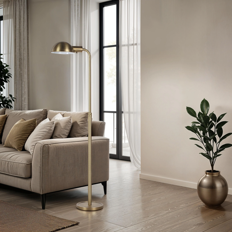 Perfect for placing next to a chair, sofa or bed, this classically styled floor lamp will bring old-world charm to any transitional interior. Featuring a dark antique brushed brass-plated finish for a time-worn patina, its height-adjustable and dimmable design offers customized lighting at the touch of a switch without sacrificing style. Product Details: