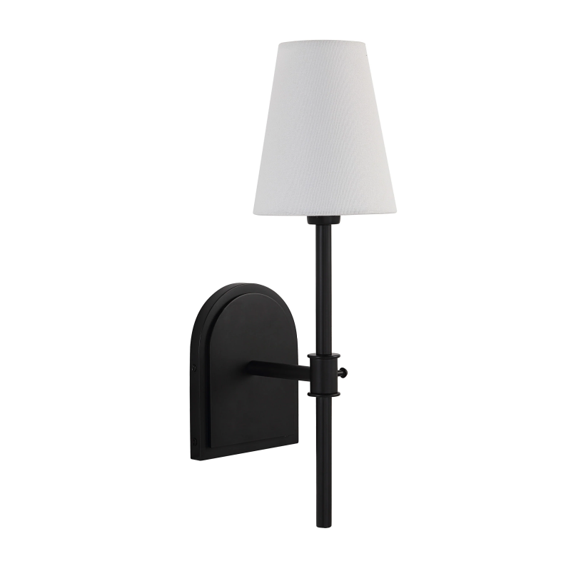 Layering the lighting in your interior design project is a perfect way to add style and function to any space. Crafted with a matte black finish and a tapered off-white linen shade, this wall sconce gets a modern update with an arched backplate to deliver an aesthetic that is both timeless and on-trend. Product Details:
