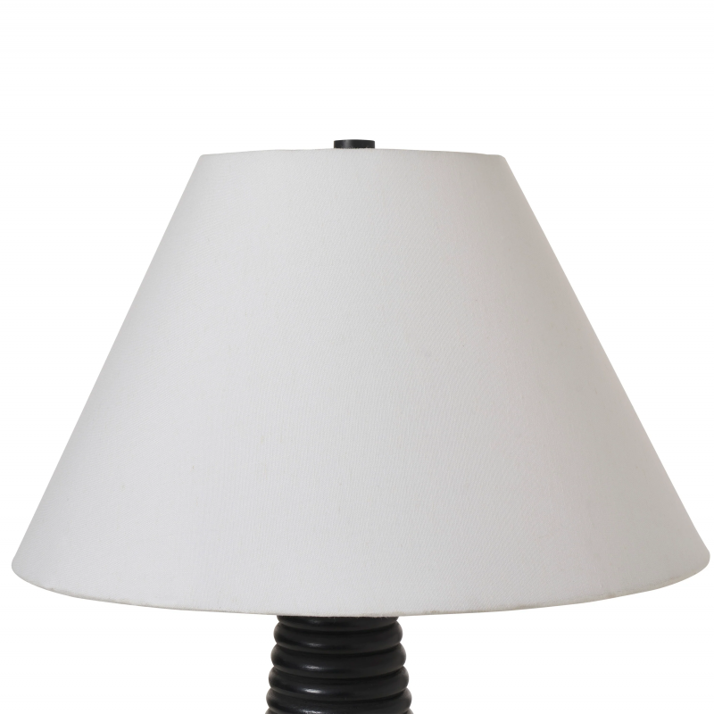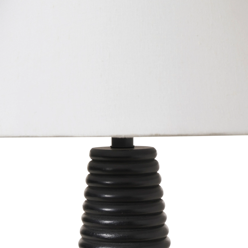 Elevate any interior with the clean lines and high contrast of this stylish table lamp. A great match for contemporary or transitional spaces, it features a stunning black wash mango wood body paired with an off-white linen shade for a look that’s balanced and chic. Set one next to a lounge chair or sofa or try a pair on a buffet or console to create a welcoming glow in any room. Product Details:
