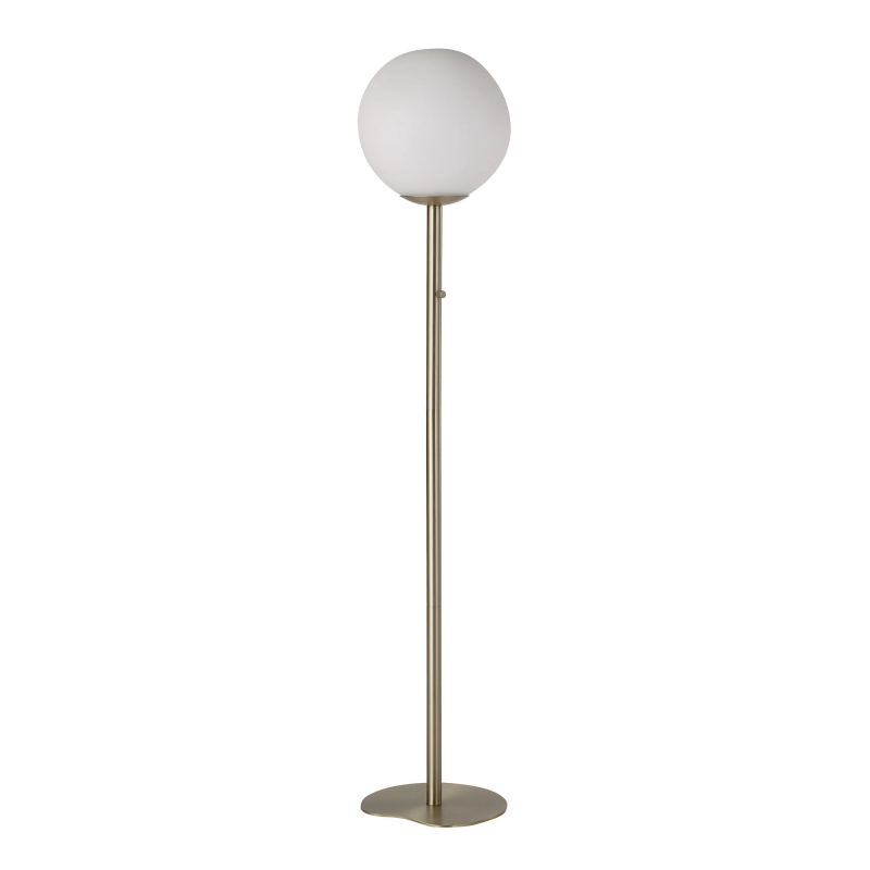 Put the finishing touch on your interior design project with the playful silhouette of this stylish floor lamp. Perfect for elevating contemporary spaces, its high-quality, on-trend materials like champagne-plated iron body and an organically shaped etched glass shade combine to bring ambient light and a modern touch to any home or office. Product Details: