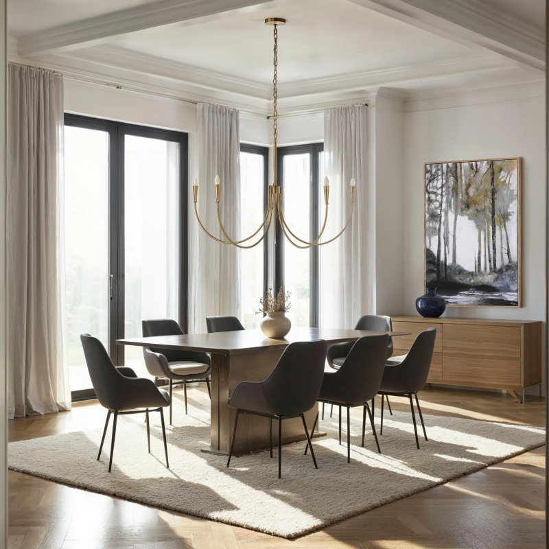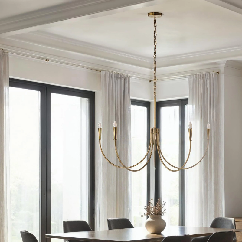 Make a timeless statement in any room of your design project with this gorgeous ceiling fixture. Marrying clean lines with classic materials to create a piece that embodies enduring charm, this dark antique brushed brass-plated chandelier is perfect for a dining room, living room, bedroom, or entryway. Product Details: