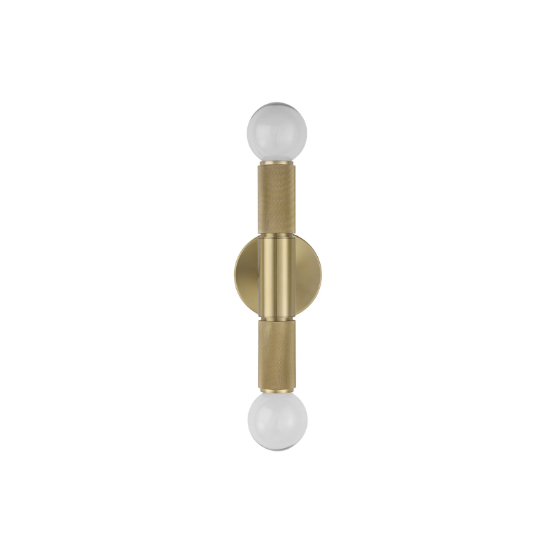 Double the illumination in any interior with the Tovi 2-light wall sconce. Crafted from high-quality burnished brass-plated iron, it has a rich and luxe look that complements many styles of decor. With two ways to hang it, try one vertically over a mirror or pair up a duo to flank a prized painting over a buffet to create instant drama in a dining room. The only limit to the placement of this beautifully modern light fixture is your imagination. Hardwiring keeps wires behind the scenes so there are no unsightly cords getting between this stunning light wall sconce and the perfect ambient light it sheds throughout the room. Product Details: