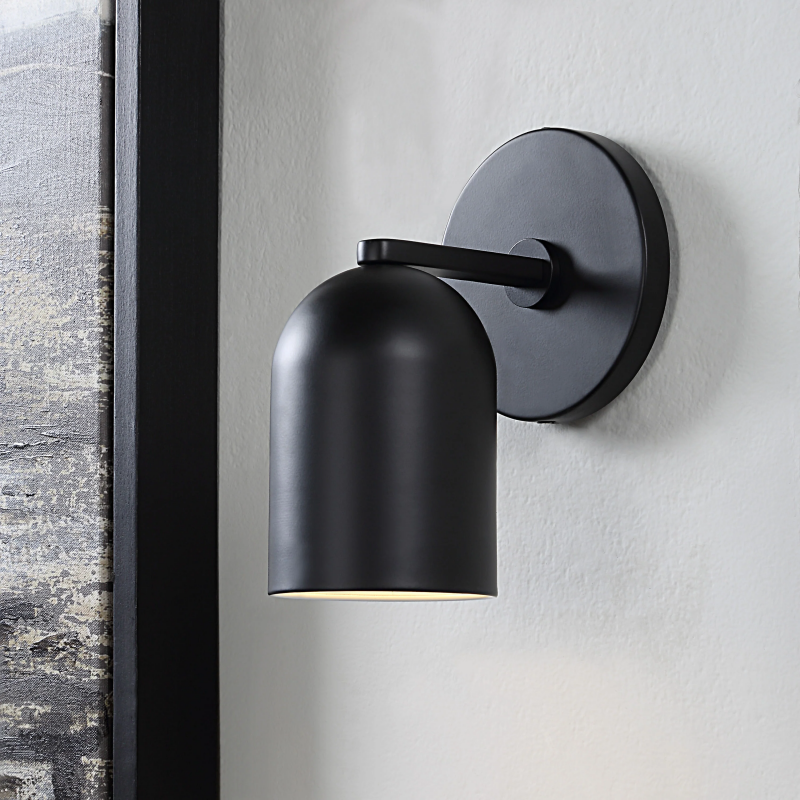 Can lighting be understated and statement making at the same time? One look at the Valonia light wall sconce and you’ll know the answer is yes. Delivering ambient lighting and constructed with a minimalist dome-shaped shade suspended from a clean-lined mounting plate, this fixture has a sleek powder-coated matte black finish that punctuates a room with great taste. Whether featured on its own or paired up for twice the impact, it offers hardwired installation with no visible wiring, so nothing gets in the way of the clean look. As at home in a Scandinavian-inspired setting as it is in a space with a vintage vibe, this modern wall sconce is a style savvy addition to any home. Product Details: