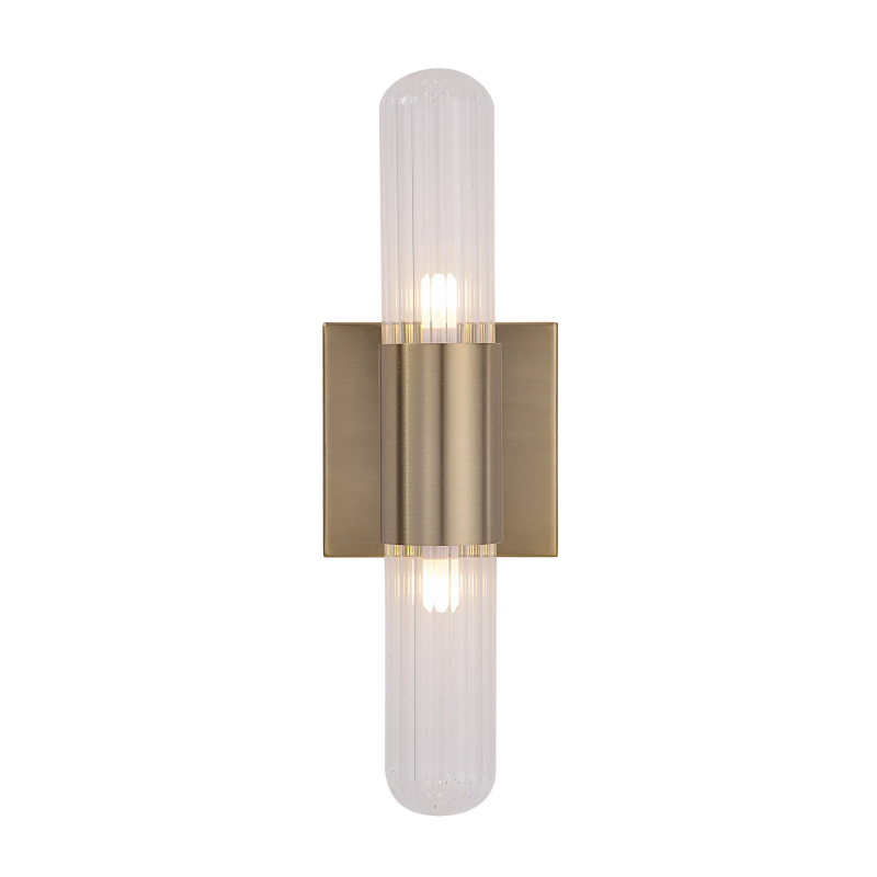 Enhance your home's ambiance with the elegant Chiara 15.75" Ribbed Clear 2-Light Wall Sconce. The robust iron wall canopy and hardwired installation ensure stable and reliable performance for any space. This stylish fixture seamlessly connects with standard G9 sockets and supports bulbs up to 3W, accommodating a wide range of lighting options. The LB022 recommended bulb type enhances the fixture's ribbed clear design to create an inviting atmosphere in your home. Product Details: