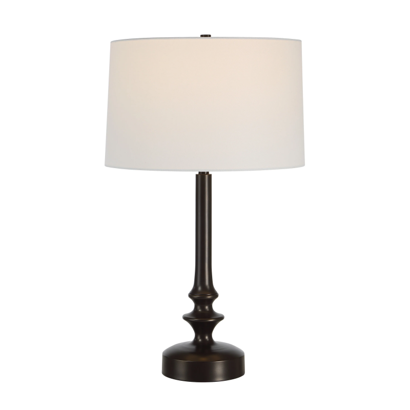 Designed to complement everything from modern to transitional decor, the Zyra table lamp brings effortless style to any room. Its streamlined iron base is finished in a matte dark bronze that pairs beautifully with a clean off-white linen drum shade. The result is a versatile look that’s perfect for showcasing your classic design sense. Product Details: