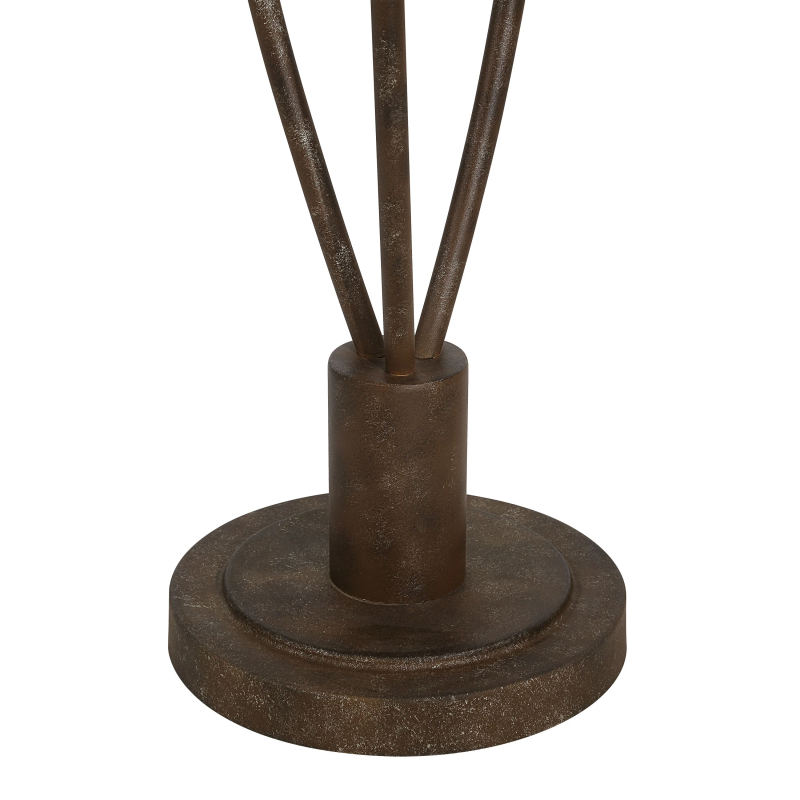 Delivering light and style through its curvaceous lines, this beautiful floor lamp is the perfect touch in any traditional space. Designed with a gold and copper bronze-finished body, and three amber glass shades, it helps shed a warm and welcoming glow in any room. Product Details: