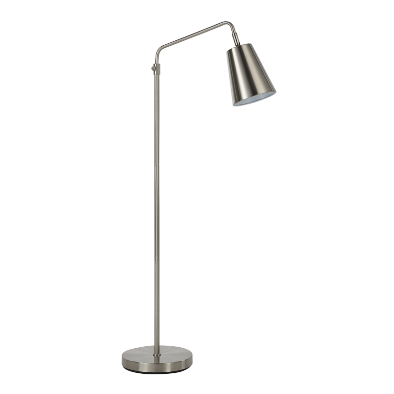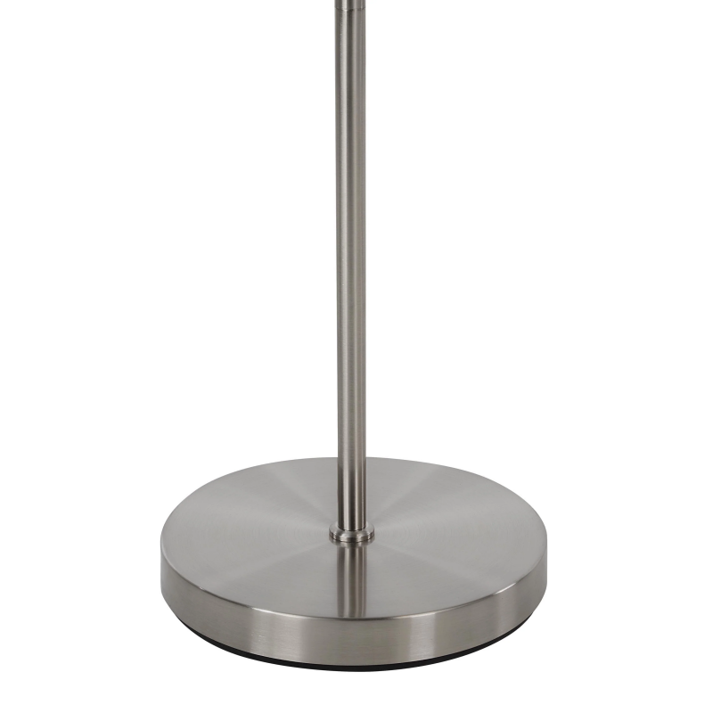 The Norwich floor lamp is poised to help create the perfect lighting in any room. Ideal for a cozy reading corner, near a sofa or next to a bed, this adjustable-height fixture effortlessly delivers ambient light anywhere it stands. Its allover brushed nickel-plated finish and clean-lined design blend stylishly with many decorating schemes. Give its foot switch a simple tap to flood any space with light and modern style. Product Details: