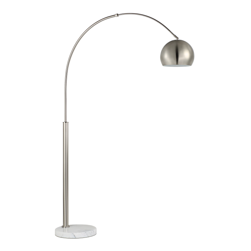 If you're looking to make a bold statement in a home or office, the Aglow floor lamp is just the thing to do it. With its stylish domed shade and curvaceous form, this iconic silhouette comes together in a timeless mix of brushed nickel-plated iron and white marble. Turn it on with its convenient foot switch for a chic hit of light and style that's perfect for any room. Product Details: