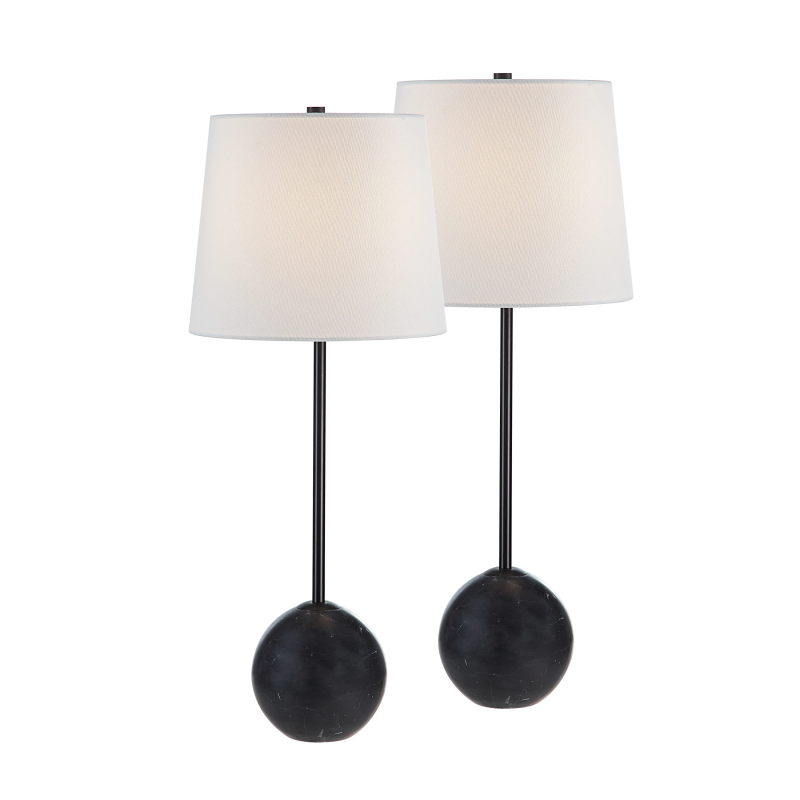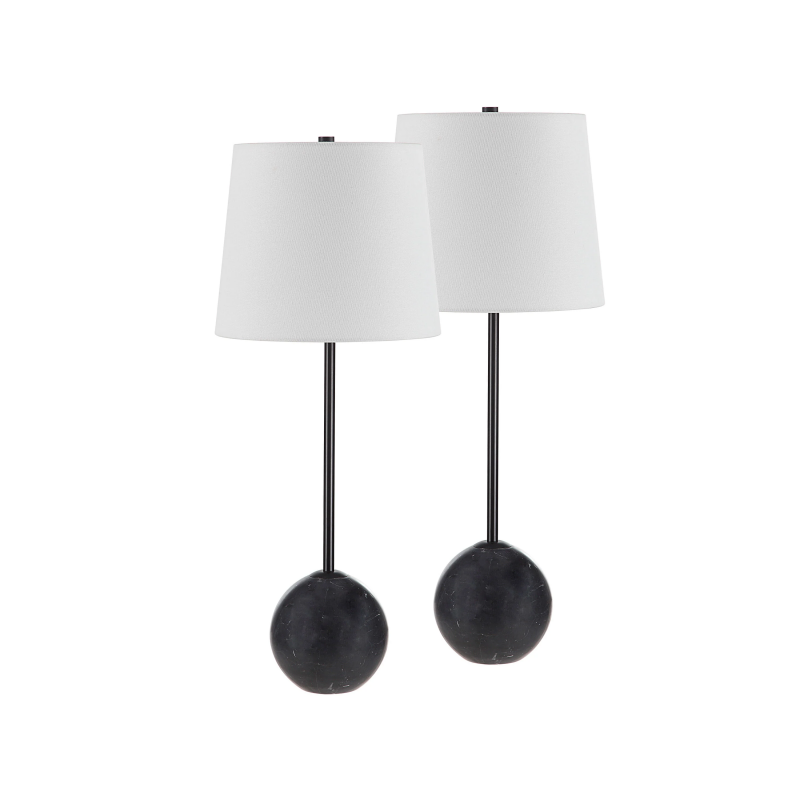 The Bangor 27" Tall Matte Black Iron Table Lamp is the perfect addition to any modern home. Each lamp features a sleek, black iron base with clean lines that complement any contemporary decor. The sophisticated tapered linen shade diffuses the light for a warm, inviting glow, while the lamp's tall 25-inch height makes it ideal for use on a bedside table or accent table. The set of 2 lamps are constructed with a sleek and modern design, and are compatible with standard E26 sockets with the ability to support bulbs up to 100W, offering a range of lighting options to personalize your space. The dimmer socket provides customizable lighting for any occasion. Product Details: