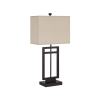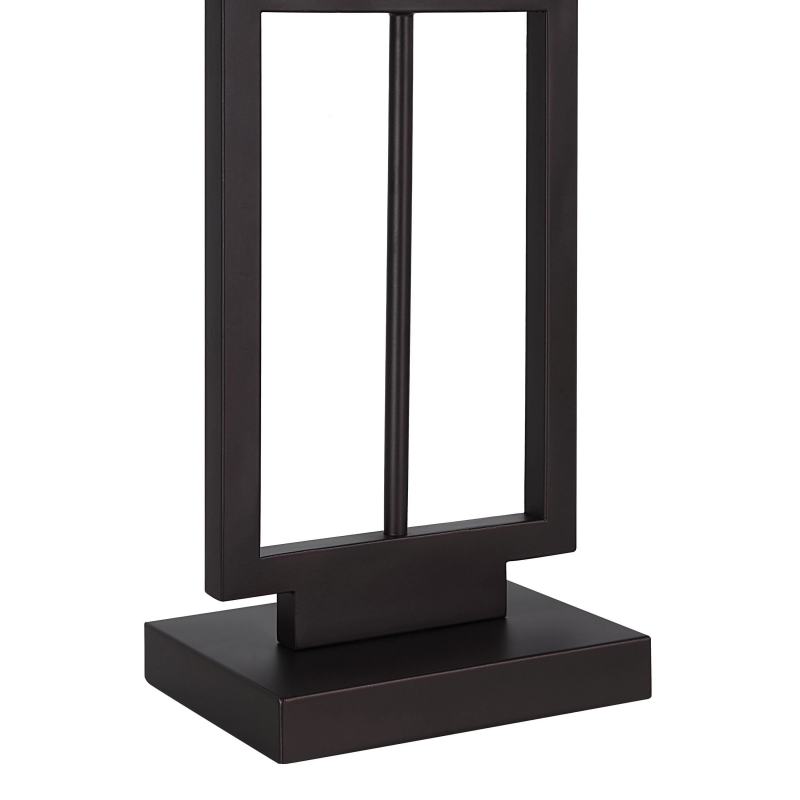 Contemporary style is a wrap when you have the Sendai table lamp in the mix. Angular lines play a big part of this light's handsome design, bringing visual interest to any space. Mimicking its rectangular body and base is a generously proportioned rectangular linen shade that perfectly complements the richly hued bronze finish. Try one or a pair to elevate the look of any room. Product Details:
