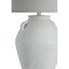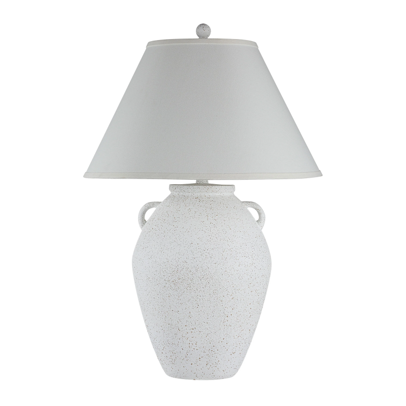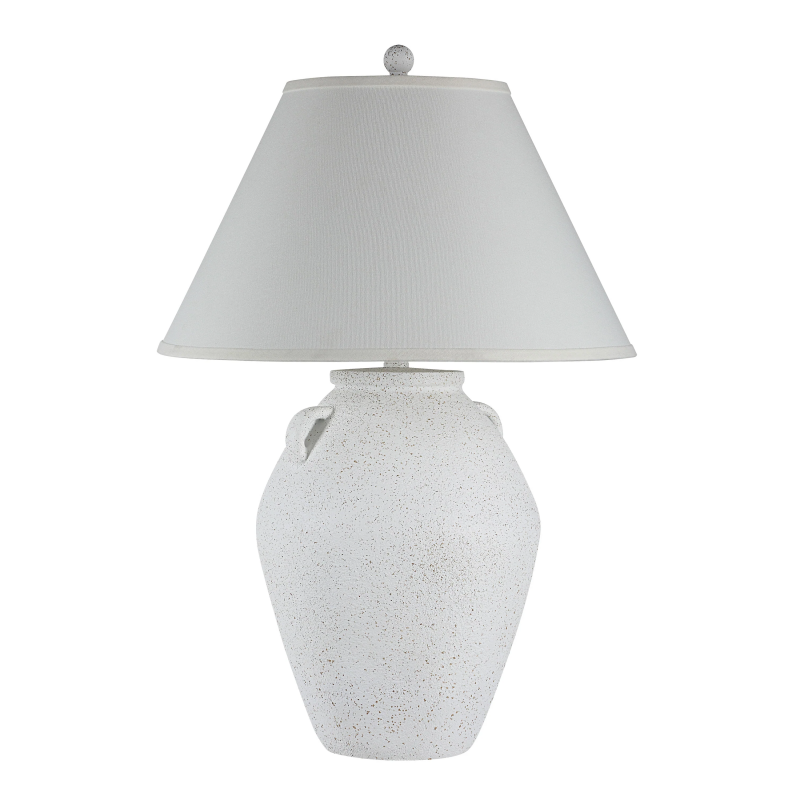 Just the thing to complete the look of your latest transitional design project, this timeless table lamp will light up the room in classic style. Featuring a double-handled jar silhouette and an off-white hand-painted patina, this clay-look lamp delivers enduring charm to any space. Finished off with an ivory drum shade, the result is warm and welcoming. Product Details: