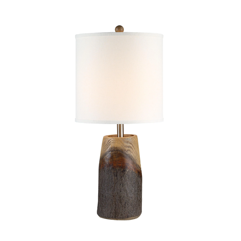 The Vinca table lamp features an incredibly realistic wood-look finish that delivers a natural touch while its tall drum shade helps diffuse customizable illumination. Perfect for flanking a large-scale painting on a buffet, on night stands on either side of a bed or solo on a living room end table, bring one or more of these lamps into your decorating project for a simple and stylish update. Product Details:
