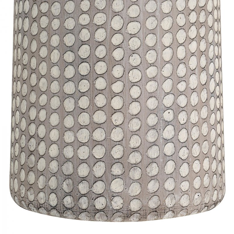 It's never been easier to bring the earthenware trend into your decorating scheme than with the Lattuga table lamp. Its long and lean body features a hammered effect with a tonal beige finish that brings loads of texture to any room. Whether you plan to display it in a dining room, living room or bedroom, its oatmeal-coloured linen drum shade will diffuse ambient light perfectly thanks to its three customizable settings. Product Details: