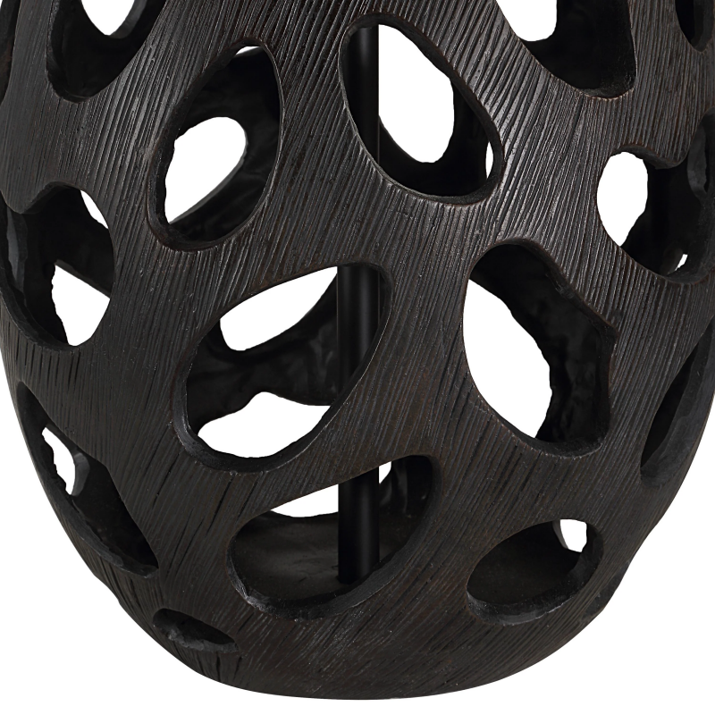 Discover the Loxley table lamp for the perfect sculptural addition to any space. Delivering an organic vibe, its base is crafted with a dark finish while maintaining an airy look. More than just great looking, this lamp offers 3 levels of light intensity, controllable from its 3-way switch and diffused through a beautiful oatmeal linen drum shade. A great match for contemporary decorating schemes, try one or a pair in any room. Product Details: