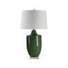 Add a sophisticated touch to your decorating scheme with the richly hued ceramic Pesca table lamp. Its crackled olive green glaze, antique brushed brass and crystal clear accents come together to create the perfect blend of form and function suitable for any stylish home. Controlling the lighting intensity of this table lamp is as simple as a flick of its 3-way switch, letting you set the ideal ambiance in any room. Product Details: