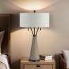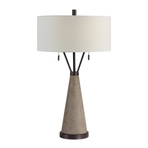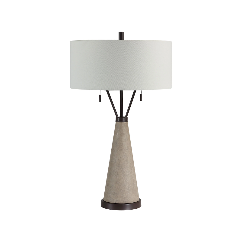Step out of the ordinary with the Lourdes table lamp. It boldly combines eye-catching finishes with a unique silhouette to bring style and function to any space. Featuring a beautiful off-white linen drum shade that filters ambient light in any room, add one or a pair to a living room, dining room, entryway or bedroom for perfect illumination. Product Details: