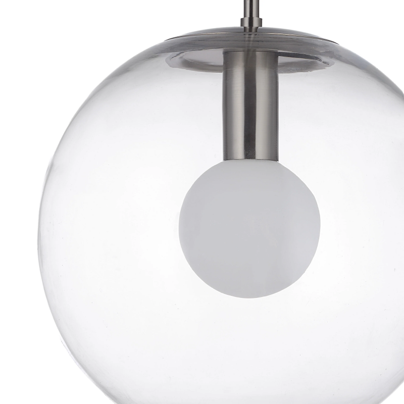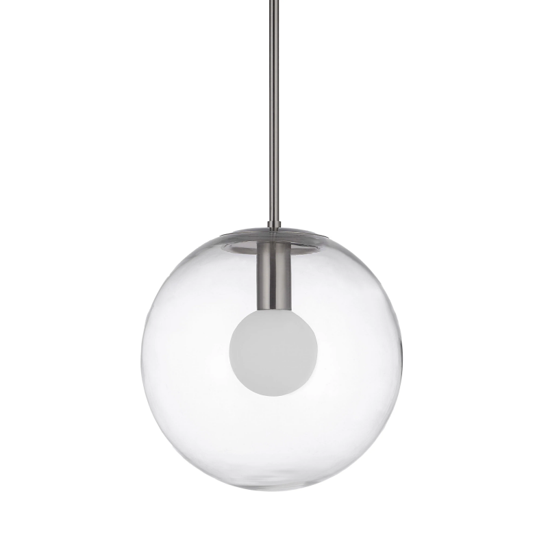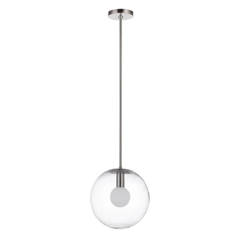 Get ready to fall in love with the simplicity of the Quince ceiling light fixture. This single pendant is designed with a clear glass globe to shed an ambient glow that’s ample enough to brighten up the room with light and style. Suspended from plated satin nickel hardware, it delivers a timeless appeal that suits any modern space. This hardwired light fixture comes with an LED bulb so as soon as installation is complete, you can flick the switch to shine the spotlight on your great taste. Hang it in multiples over a kitchen island or try just one over a table or in an entryway to add instant style to your design project. Product Details: